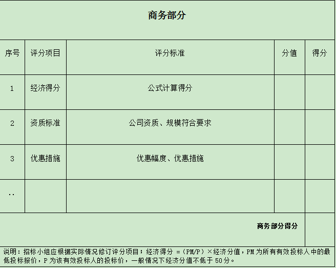 經(jīng)濟(jì)得分=(評標(biāo)基準(zhǔn)價(jià)/投標(biāo)報(bào)價(jià))X價(jià)格權(quán)值X100(價(jià)格權(quán)值為30%)