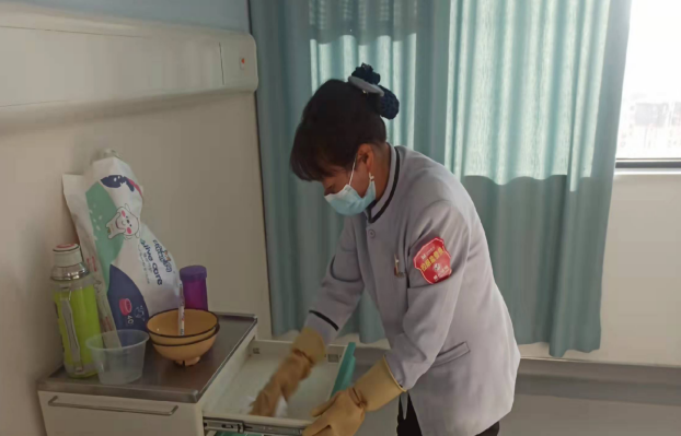 人員培訓、落地到位:在工具到位的同時,培訓自員工入職之日起貫穿,指導消毒劑的配比、使用,不同工具的區(qū)分使用,特備是病人出院后全面消毒:病床、床墊、床頭柜、床欄,用消毒劑浸泡后的小白毛巾全面清潔、消殺再清潔,務必保證清潔到位。
