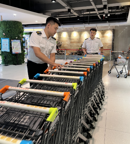 夏季的雨來得隨心所欲,前一秒的晴空萬里,后一秒便是傾盆大雨,“有人等煙雨,有人怪雨急”,這場突如其來的大雨,困住了大家的腳步,小小的臺階上站滿了手足無措的人群,有人抱怨著始料未及的大雨,有人為如何回家而煩心。就在這時,躁動的人群中出現了幾個高大的身影,手中撐著雨傘,口中還不停地重復著:“大家請不要著急,我們會負責把大家安全送達位置,咱們超市的服務臺也有雨傘,大家有需要的可以到服務臺租借”。一番話下來,人群頓時安靜了不少,大家也都安下心來,同時幾位防損部的同事開始有序的輪流送起賓客來。煙酒柜離電梯口很近,夏天雨季時候常會有這樣的情景映入眼簾。