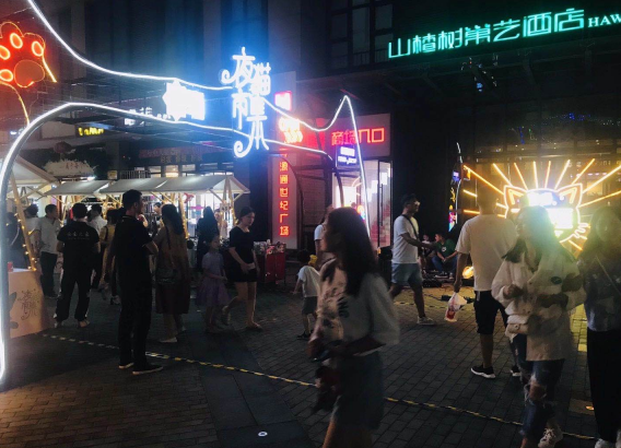 新聞動(dòng)態(tài)8月15日,亨源通世紀(jì)廣場(chǎng)夜貓市集正式開(kāi)業(yè)。入夏以來(lái),地?cái)偨?jīng)濟(jì)特別火。亨源通世紀(jì)廣場(chǎng)與360一樓連接通道處突然多出了50多個(gè)地?cái)偂I虉?chǎng)內(nèi)部通道的攤位和外面的地?cái)傆兄黠@的區(qū)別,顯得整齊劃一,井井有條,更加高大上。這里的攤位經(jīng)過(guò)規(guī)劃,整齊的擺在通道兩側(cè),且攤位樣式都設(shè)計(jì)成了梯形的桌子,市民不用蹲下就能挑選商品,除此之外,各個(gè)攤位還被各色彩燈裝飾了一番,隨著樂(lè)團(tuán)的加入,時(shí)尚感十足。