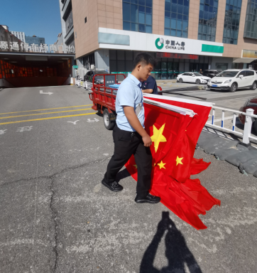 9月28日清晨,世紀廣場項目物業(yè)共懸掛50余面國旗,由工程部同事負責懸掛安裝。廣場步行街、沿街燈箱及內(nèi)街商鋪街區(qū)都掛上了五星紅旗,形成了一道靚麗風景線。