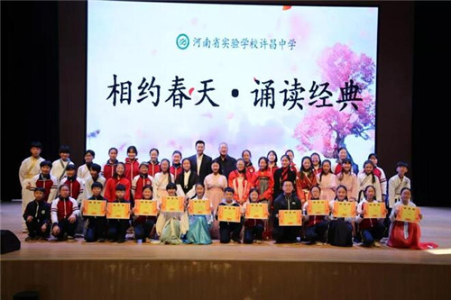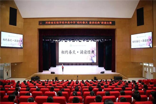 2019年3月15日,河南省實(shí)驗(yàn)學(xué)校許昌中學(xué)的全體師生在學(xué)校報(bào)告廳舉行了主題為“相約春天 誦讀經(jīng)典”的朗誦比賽。