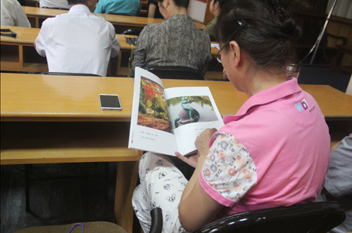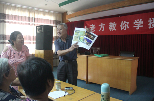 8月2日下午,在經(jīng)過半天休整之后,方老師開始為團員們講課。“我們老年人應(yīng)該有自己的興趣和追求,要學(xué)會自己找樂。”“現(xiàn)在小孩都是老年人在帶,我們學(xué)會了攝影就可以教孩子,對他們將來也有好處!狈嚼蠋煹囊幌,頓時就讓許多團員萌生了學(xué)攝影的想法。接著,他向團員們展示了自己拍攝的眾多精彩照片,并拿出一本攝影圖集供大家傳閱。“這本圖集里,都是我在老年大學(xué)教書時,學(xué)員們拍的照片。最大的學(xué)員都80多歲了,但是照片拍的特別好。相信大家通過學(xué)習(xí),也可以拍的如此精彩。”方老師的話,給了在座的老人極大的信心,大家也學(xué)的更加認(rèn)真。